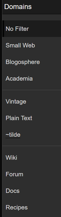 In marginalia there is a URL parameter "&profile=" that appears in the "Domains" section of the search filters, shown in the image: