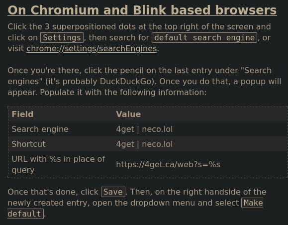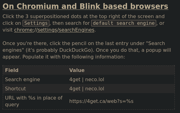 on alternative instances, the about page gives wrong / easily misinterpretable information re: adding a search engine on chrome #43
