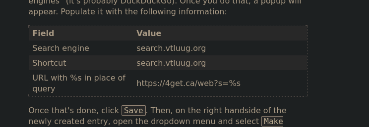 now a barely technically literate person would probably spot this, but anyone else, or just someone in a rush to copy+paste the information given to them into the indicated fields will create a search engine entry with the name of the instance they want, but that actually uses 4get.ca.